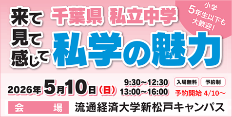 - ▶ 05/10開催「来て見て感じて 千葉県私立中学 私学の魅力」の情報を掲載しました。