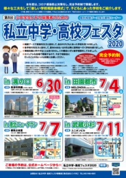 小中学生の保護者のための合同学校説明会「私立中学・高校フェスタ2020」が溝の口・田園都市・港北ニュータウン・武蔵小杉の4会場で開催されます。溝の口・田園都市・港北ニュータウン・武蔵小杉エリアから通える範囲の中学校・高校の情報をまとめて入手するチャンスです!