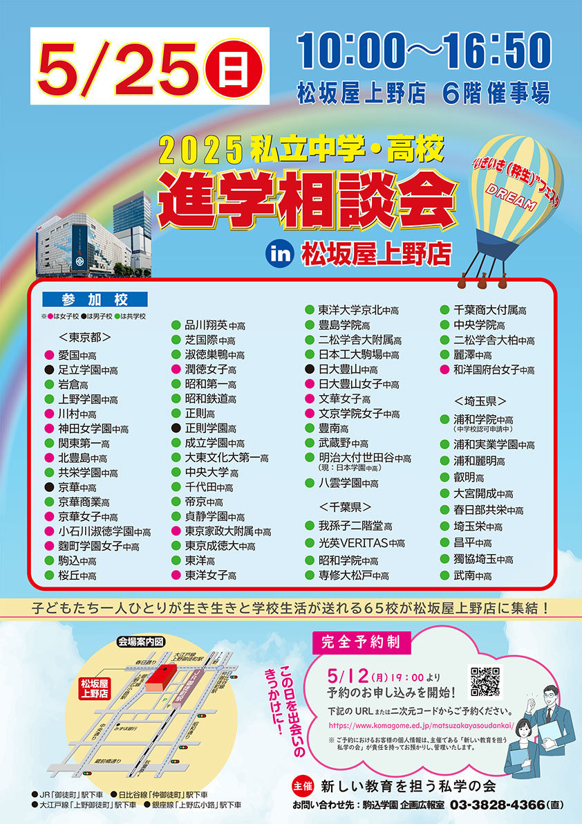 首都圏の私立中学・高校65校が参加する「私立中学・高校進学相談会」が開催されます。