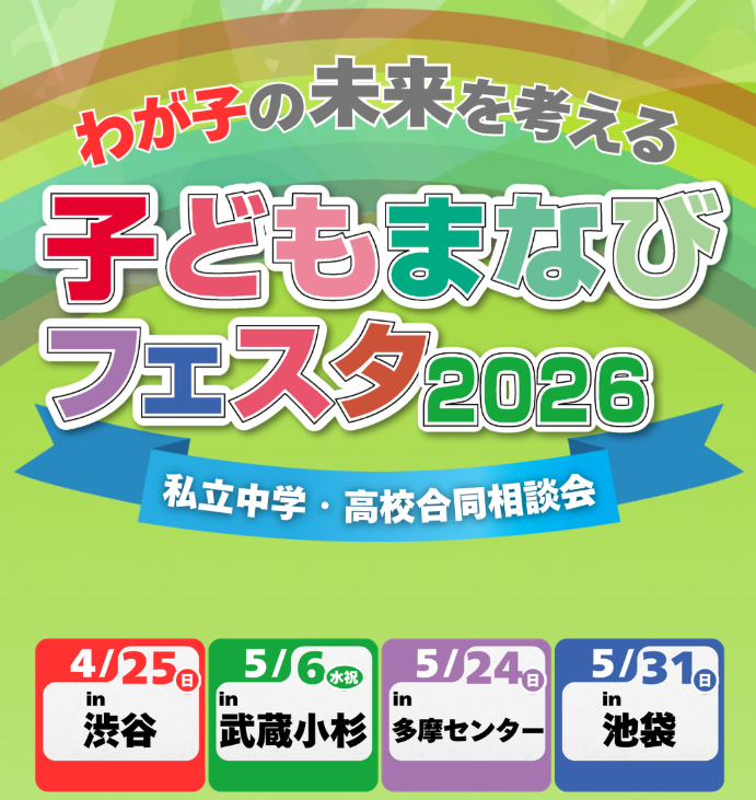 “わが子の未来を考える”私学の祭典「子どもまなびフェスタ」が4会場で開催されます。参加学校の最新資料を入手したり、相談ブースで直接質問したり、様々な角度から私学を知ることができるイベントとなっています。「子育て」「学校生活」「受験」など、お子様の未来について考えられる本フェスタへぜひ参加してみてはいかがでしょうか。